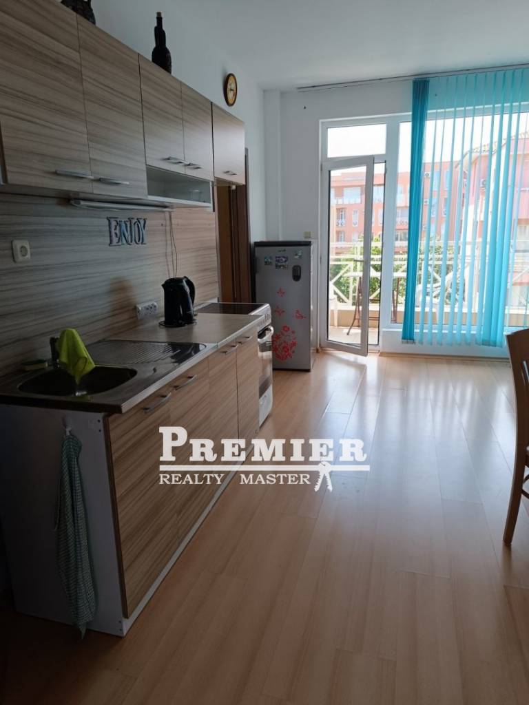 Предлагаме за продажба отличен двустаен апартамент в затворен комплекс. Апартаментът се намира на 4-ти етаж, 45 кв. м. Състои се от хол с кухня, спалня, баня и балкон. Апартаментът е оборудван с всичко необходимо за комфортен престой. Намира се в градски комплекс, на 4 км от курорта Слънчев бряг. Комплексът разполага с всички удобства и забавления - 5 открити басейна, 2 тенис корта, футболно, баскетболно игрище, спортни и детски площадки и много други. Без комисионна от купувача.