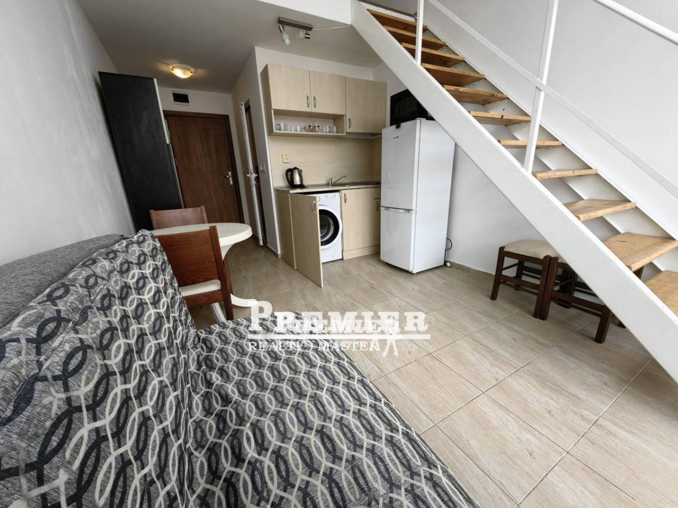 Предлагаме за продажба двуетажен апартамент в затворен комплекс в Слънчев бряг. Апартаментът с площ от 40 квадратни метра се състои от входно антре, хол с кухненски бокс, баня с тоалетна и тераса на партерния етаж, и спалня на втория етаж. Продава се напълно обзаведен. Удобствата включват басейн, детски басейн, детска площадка и охрана. Без комисионна за купувача.