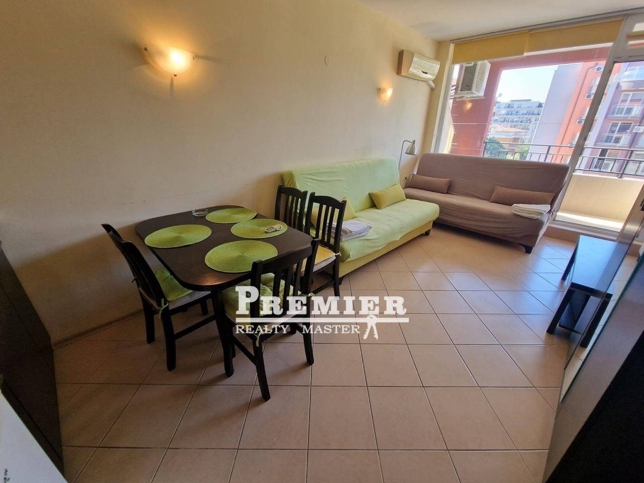 Този просторен студио апартамент се намира на четвъртия етаж на затворен комплекс в Слънчев бряг. Състои се от коридор, просторна всекидневна с кухненски бокс, тераса с изглед към басейна и баня с тоалетна. Напълно обзаведен. Без комисионна!