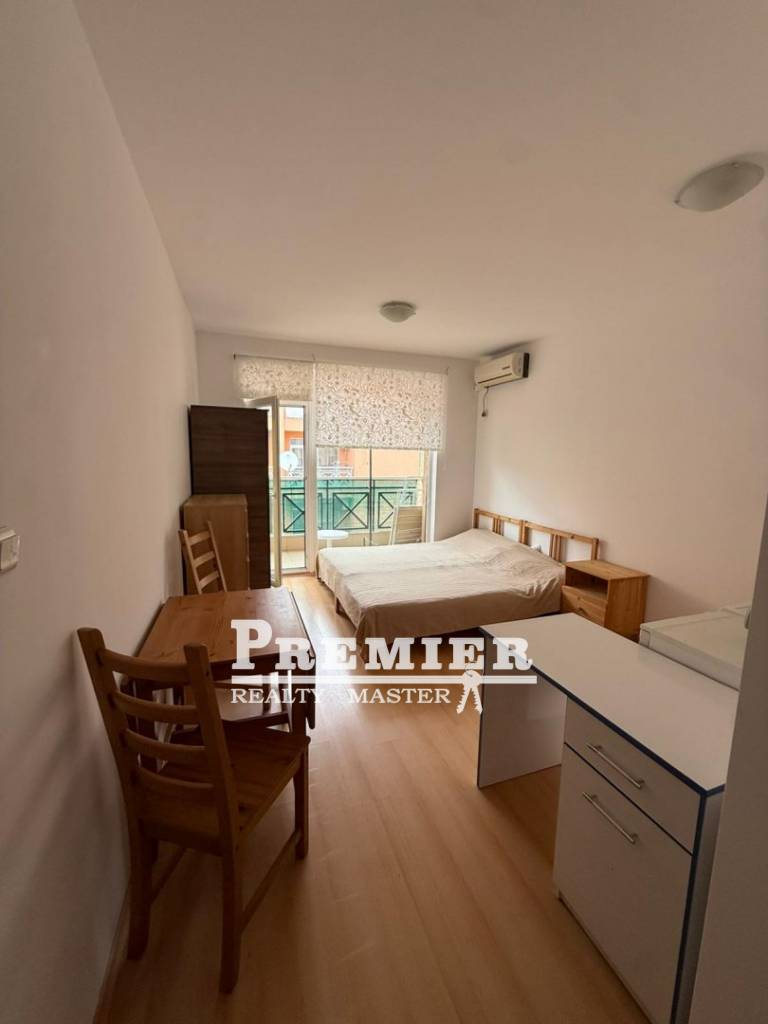 Продава се отлична студио апартамент с площ от 31 м2, с балкон, обзаведено и готово за живеене или отдаване под наем, в комплекс само на 4 км от Слънчев бряг, в ограден и охраняем комплекс с 5 басейна, спортни площадки, има магазин и ресторант, който работи през сезона. Комплексът е подходящ за постоянно живеене, а също така все повече хора предпочитат спокойна лятна ваканция в този комплекс. БЕЗ КОМИСИЯ ОТ КУПУВАЧА.