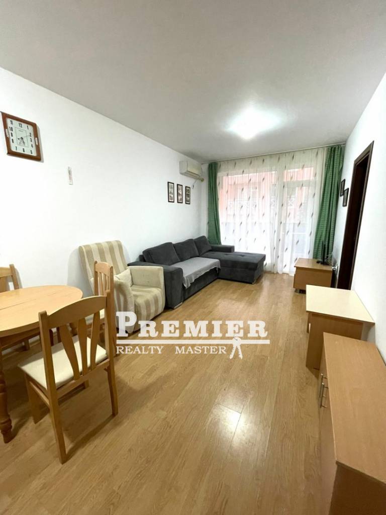 Продава се отличен апартамент с отделна спалня в комплекс, разположен само на 3 км от курортния град Слънчев бряг. Голям затворен комплекс с целогодишна охрана, на територията има 5 басейна, тенис корт, детски площадки, сезонно работят ресторант и магазин. Апартаментът е в отлично състояние, напълно обзаведен и готов за живеене. Без комисиона от купувача.
