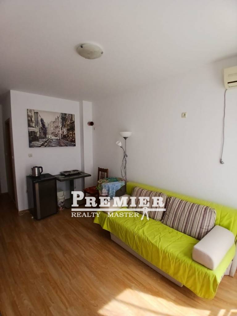 Продава се студио в комплекс Sunny Day 6, разположен на 3 км от Слънчев бряг. Този апартамент със западно изложение, на втори етаж, е топъл и уютен. Намира се в целогодишен затворен комплекс с паркинг, видеонаблюдение, 24-часова охрана, пет басейна, спортни и детски площадки. Продава се с всички уреди и мебели. Акт 16 и електричество са включени.